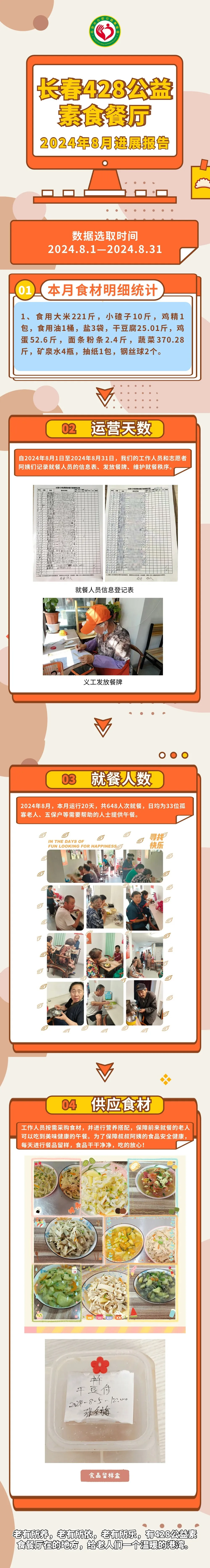 长春428公益素食餐厅在各位爱心人士的关心与支持下,运营状况稳步提升。不断优化菜品口味,丰富菜品种类,照顾老人的口味需求,让每一位来到餐厅的老人都能感受到家的温暖。